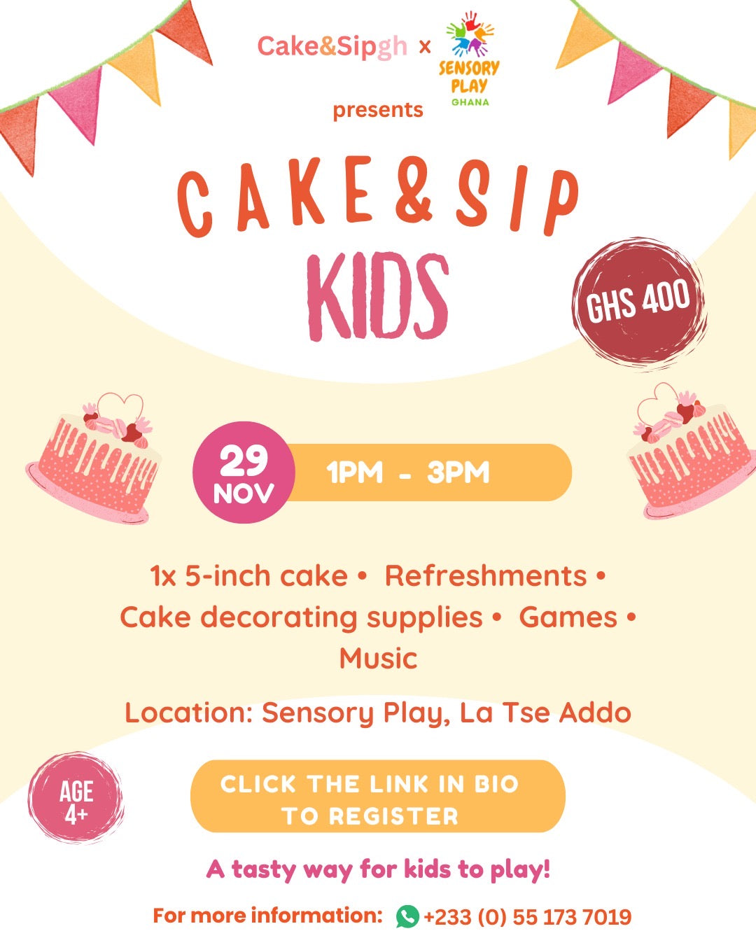 On the CART page, please note any allergies your child has. If you consent to them appearing in Cake & Sip’s social media or marketing materials, add “Photo consent: YES” in the notes section.